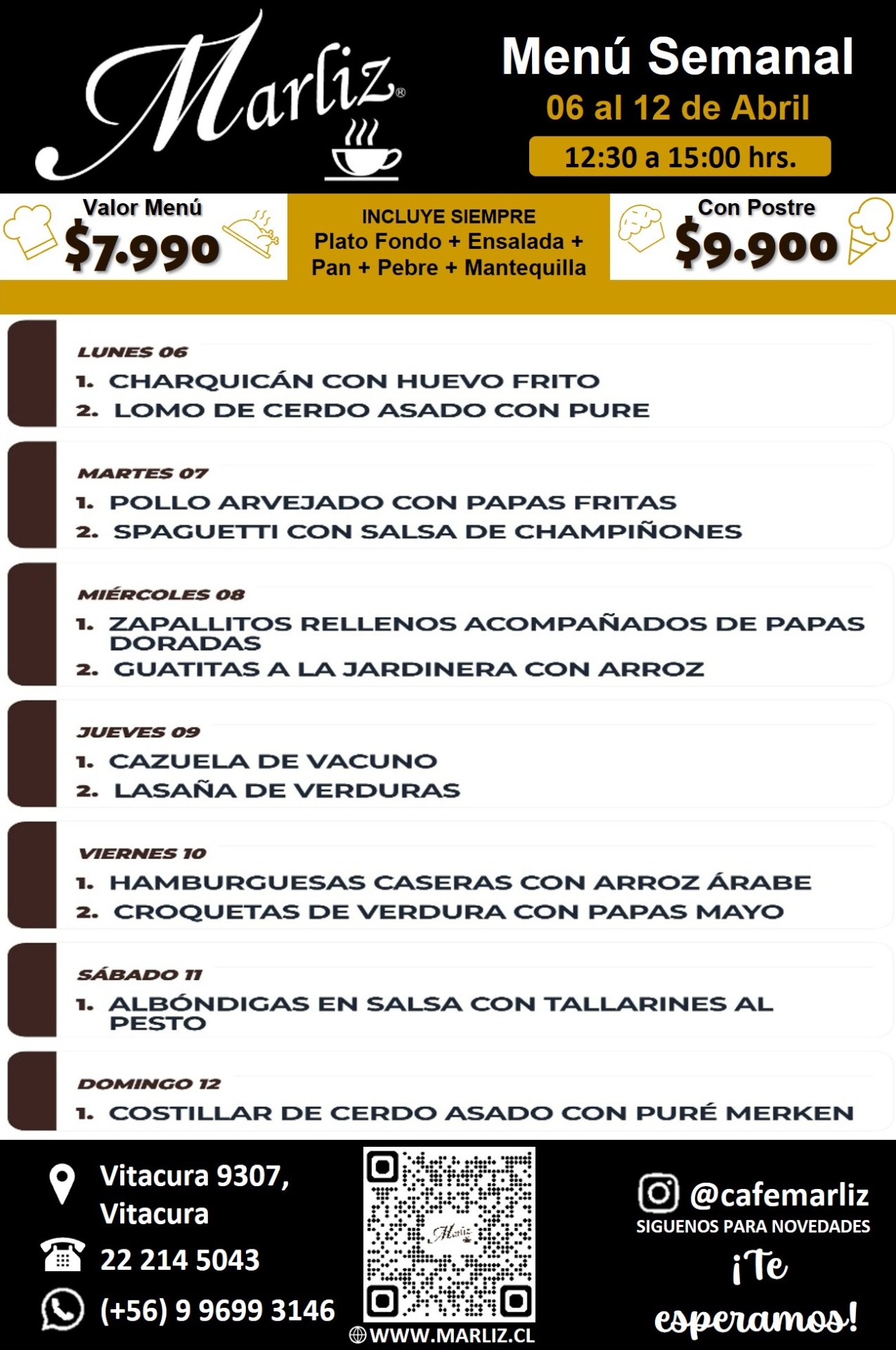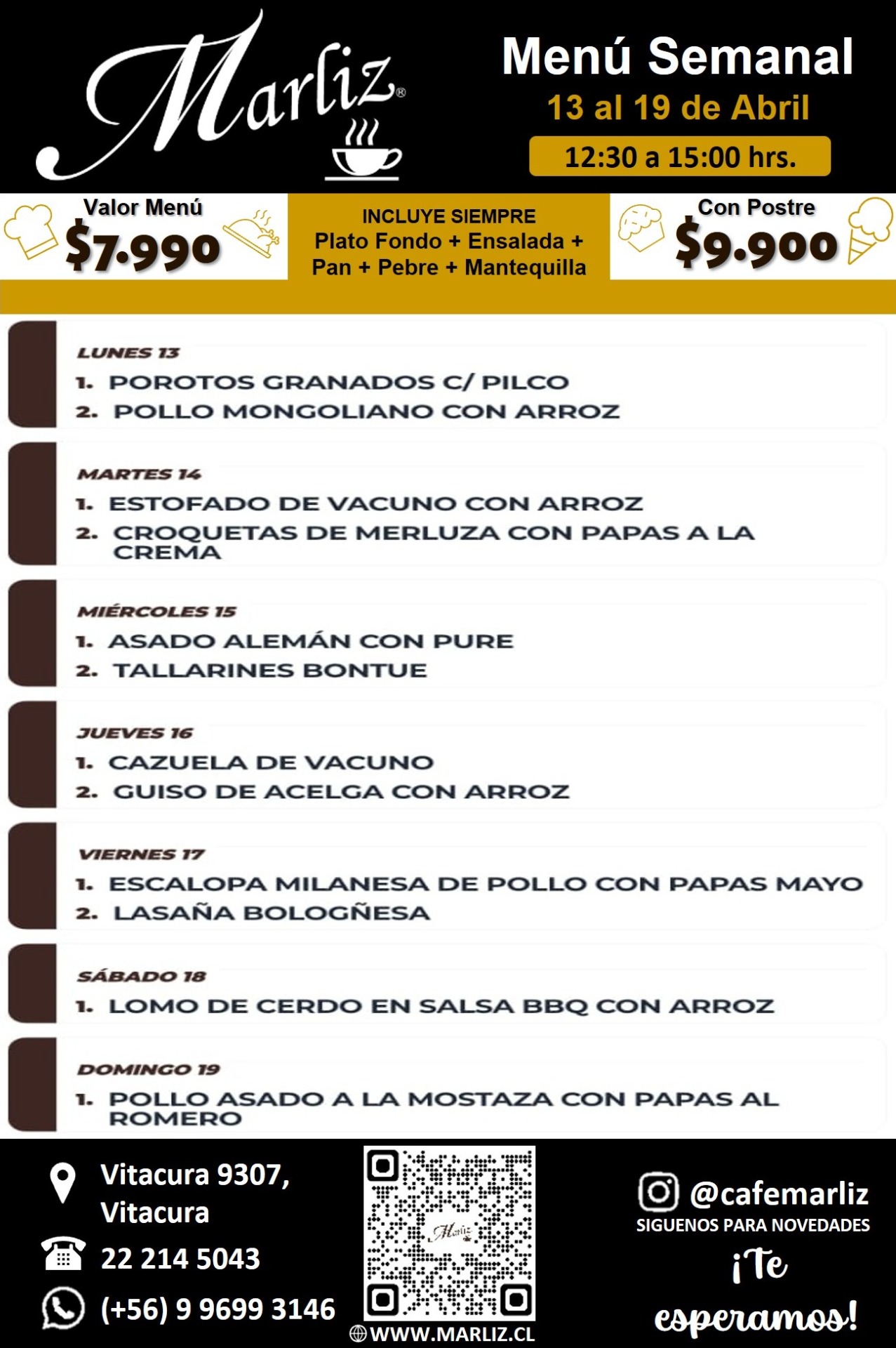 Haz tu pedido a través de la app o por internet y recibe una deliciosa comida a domicilio. Con un menú variado y de calidad, cada bocado prometé satisfacer tus antojos. No esperes más y descubre todo lo que Marliz tiene para ofrecerte.